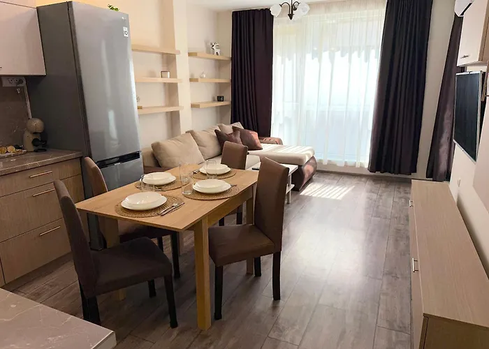 El Apartamento Уютен Двустаен Гранд Мол tiene acceso a una cocina con un lavavajillas y un horno. La estación de autobuses Central Station Varna está cerca del Apartamento Уютен Двустаен Гранд Мол, a 500 metros.